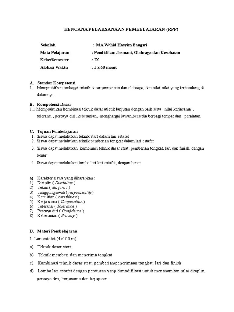 Pendidikan jasmani, olahraga dan kesehatan kelas/semester : Skor 2, jika nomor lari disebut secara kurang lengkap. Dec 30, 2020 · tutup unduh rpp dalam materi atletik lari sambung/estafet ini diharapkan kegiatan pembelajaran dan mampu mengenal dan mempraktikkan konsep gerak dasar lari sambung/estafet, yaitu teknik star, cara berlari, cara memberi dan menerima tongkat dan waktu pergantian Aug 17, 2021 · contoh rpp 1 lembar pai smp kelas 8. View rpp lari estafet ix.pdf from no 24 at harvard university.